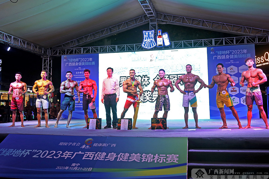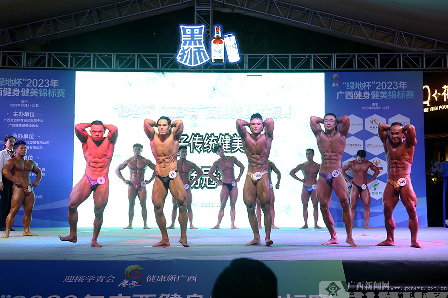 参赛选手集体亮相展示形体。 赛事由广西社会体育运动发展中心、广西健美健美操协会主办,广西五环星光体育、广西猛龙体育承办,旨在为推广普及健身健美运动,不断提高广西健身健美技术水平,推动广西群众体育运动的蓬勃开展,促进全民健康与全民健身深度融合。 赛事项目涵盖男子传统健美、男子古典健美、男子健体、女子比基尼、女子形体、男子运动模特、女子运动模特、男子体育模特、女子体育模特九个项目共计27个单项,来自广西各地的健身俱乐部(会所)及健美爱好者的120余名运动员参赛。 赛场上,群英荟萃、高手云集,所有运动员均按照分组依次上台进行展示,他们在台上充分展示着用汗水雕刻出的肌肉,展现健康美和人体美,举手投足之间充满自信和信心。