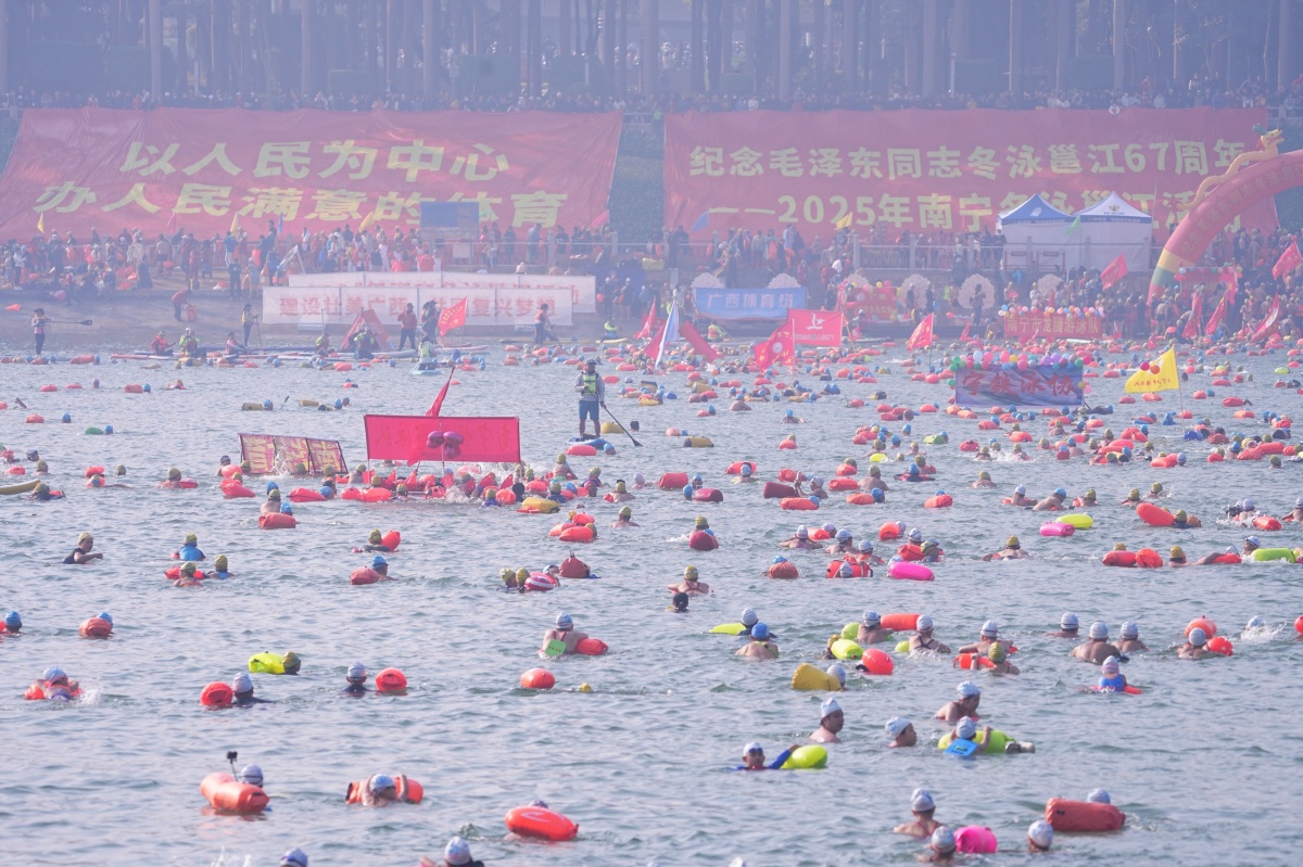 “邕”抱新年,“泳”动激情。1月1日上午,纪念毛泽东同志冬泳邕江67周年——2025年南宁冬泳邕江活动在南宁邕江大桥畅游阁附近水域进行,来自全国各地的3000余名游泳爱好者陆续横渡邕江,以运动的方式开启新年征程,为绿城带来了满满活力与浓浓喜庆。